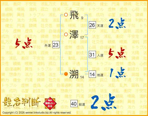 飛澤溯さんの人運は31画の5点!