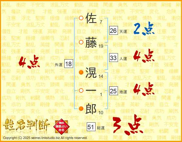 佐藤滉一郎さんの人運は33画の4点!
