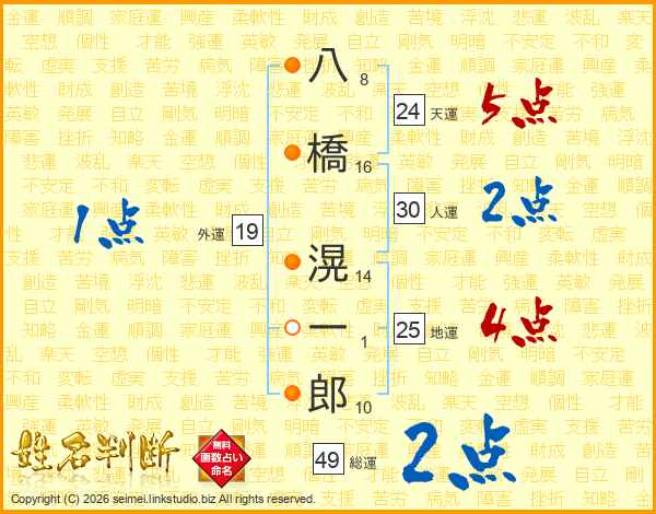 八橋滉一郎さんの総運は49画の2点!