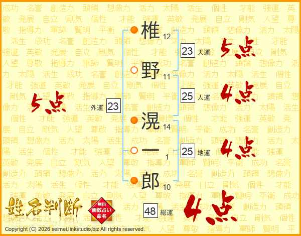 椎野滉一郎さんの外運は23画の5点!