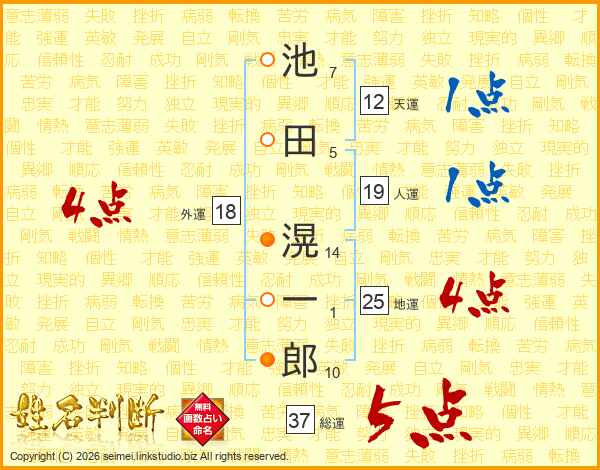 池田滉一郎さんの総運は37画の5点!