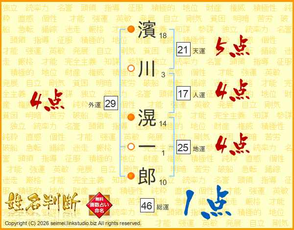 濱川滉一郎さんの総運は46画の1点!
