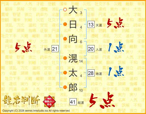 大日向滉太郎さんの総運は41画の5点!