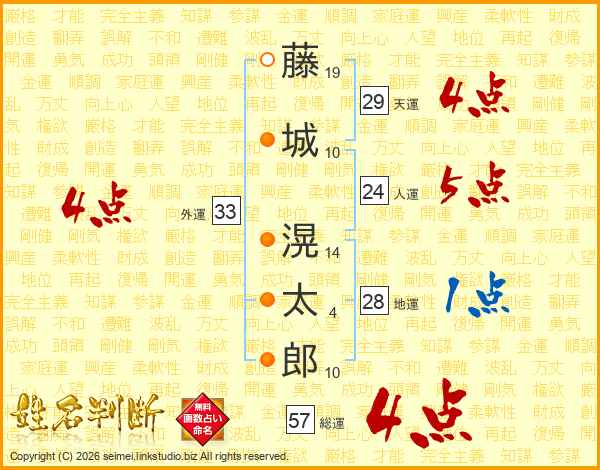 藤城滉太郎さんの外運は33画の4点!
