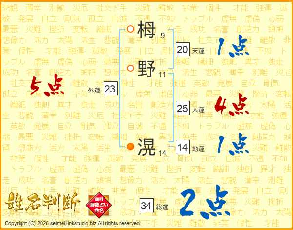 栂(9画)野(11画) 滉(14画)