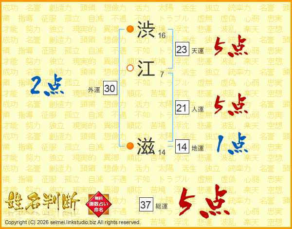 渋江滋さんの総運は37画の5点!