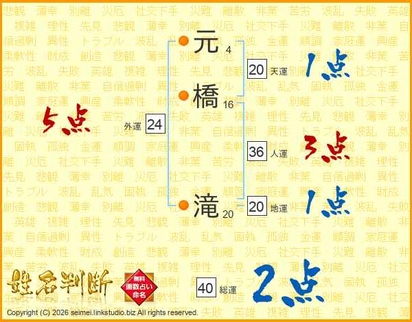 元橋滝さんの総運は40画の2点!