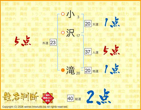 小沢滝さんの人運は37画の5点!