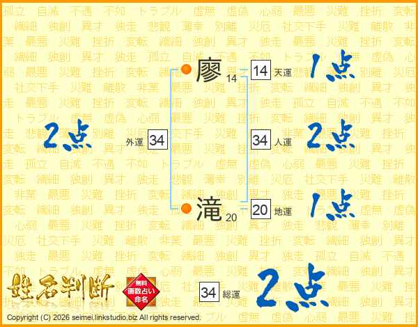 画数の奇数(○陽)と偶数(●陰)の配列で吉凶を占います。どちらかにかたよる名前は大凶名で避ける必要があります。画数の奇数偶数。