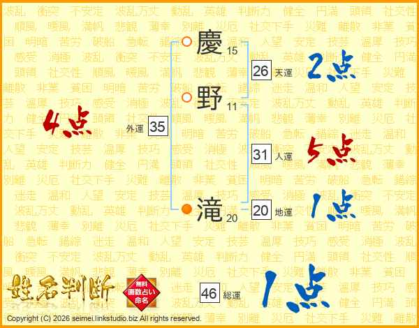 慶野滝さんの総運は46画の1点!