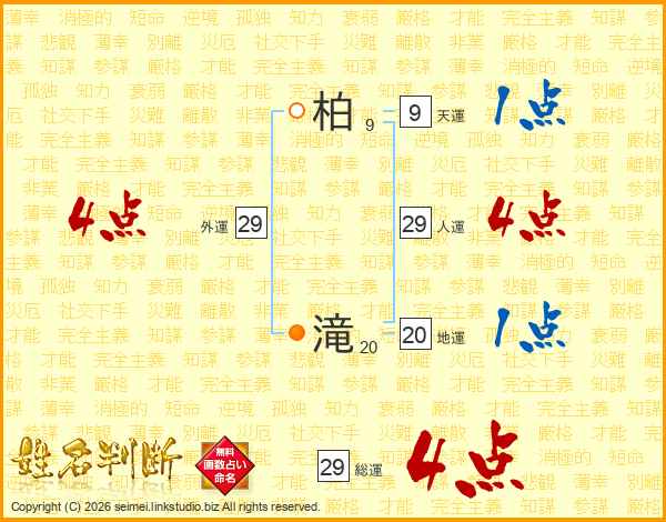 柏滝さんの総運は29画の4点!