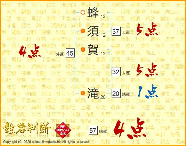 蜂須賀滝さんの総運は57画の4点!