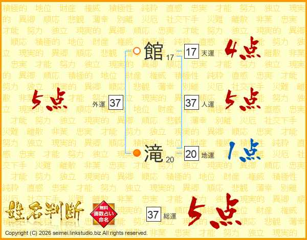 館滝さんの人運は37画の5点!