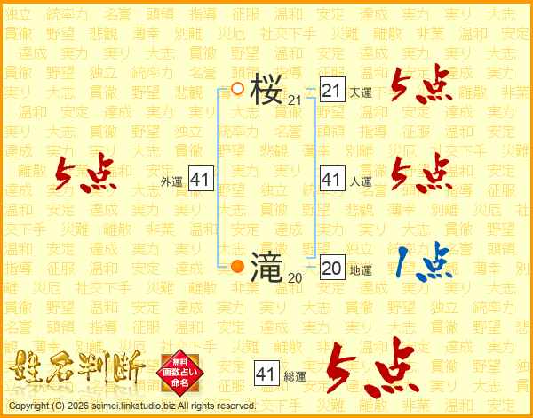 桜滝さんの人運は41画の5点!