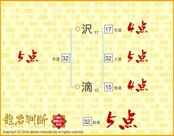 沢滴さんの総運は32画の5点!