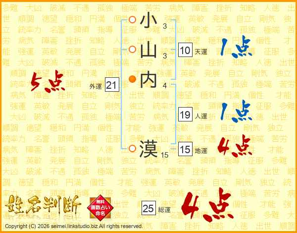 小山内漠さんの総運は25画の4点!