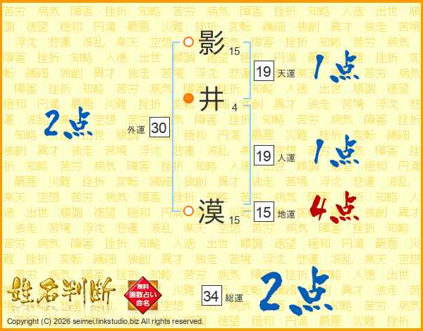 影井漠さんの総運は34画の2点!