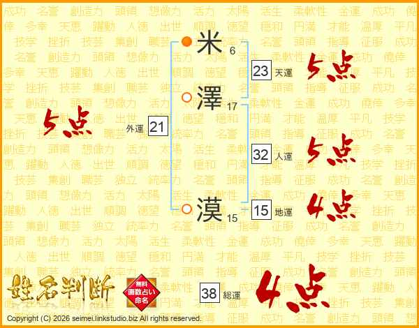 米澤漠さんの総運は38画の4点!