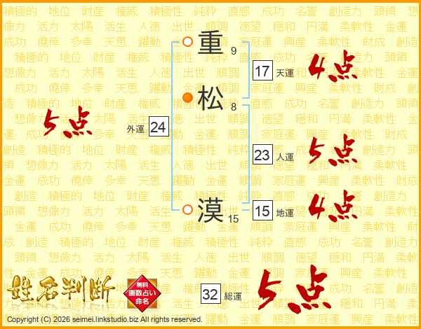 重松漠さんの総運は32画の5点!
