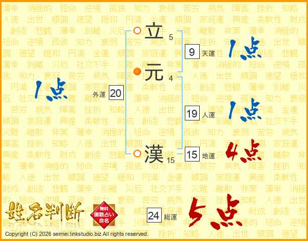 立元漢さんの総運は24画の5点!