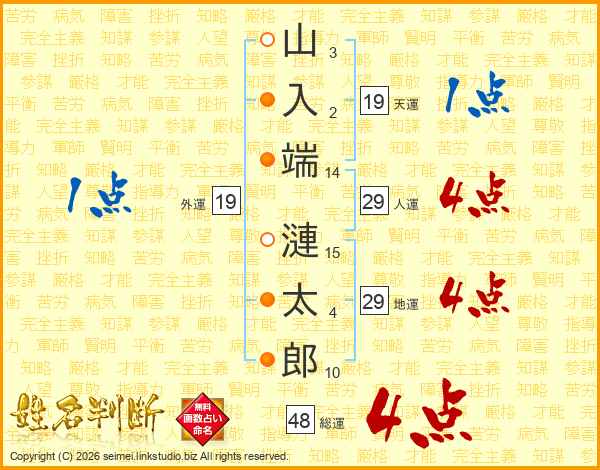 山入端漣太郎さんの総運は48画の4点!