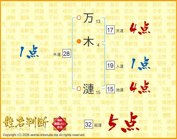万木漣さんの総運は32画の5点!