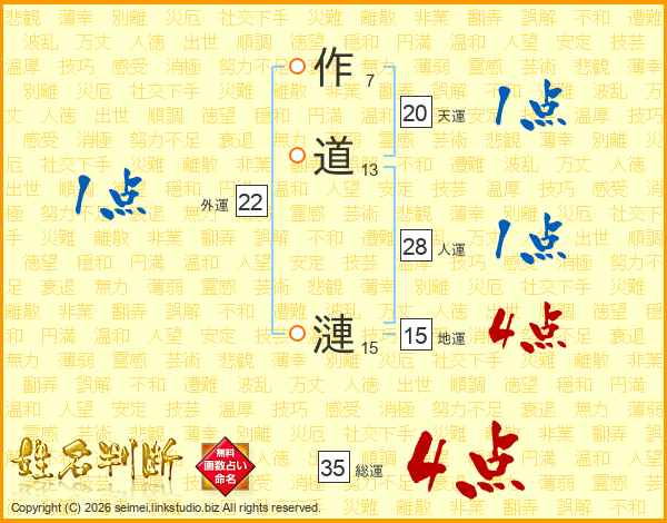 作道漣さんの総運は35画の4点!