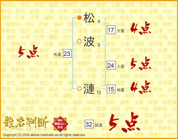松波漣さんの総運は32画の5点!