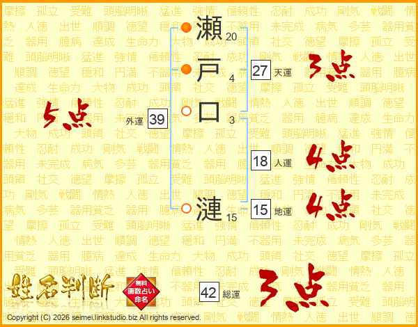 瀬戸口漣さんの外運は39画の5点!