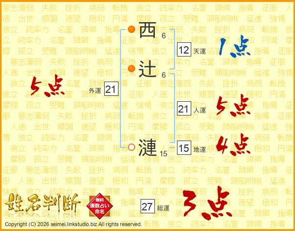 西辻漣さんの外運は21画の5点!