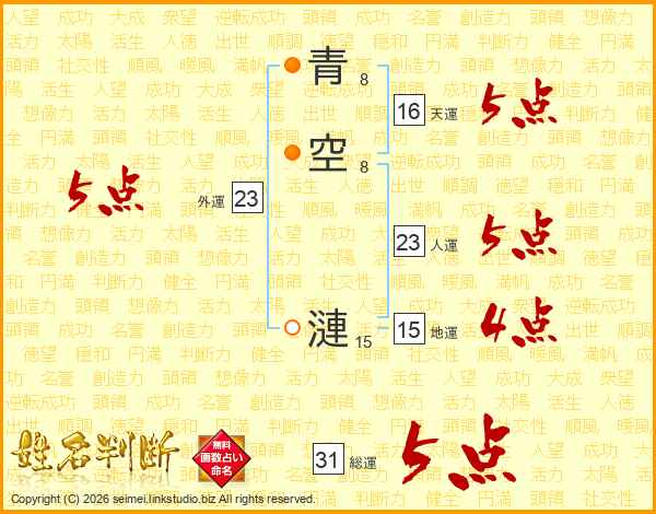 青空漣さんの総運は31画の5点!