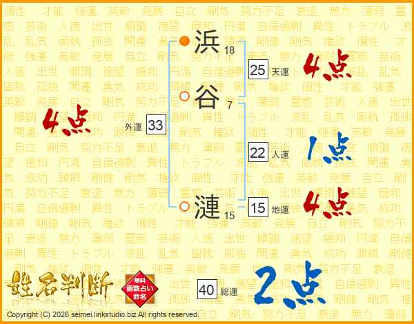 浜谷漣さんの天運は25画の4点