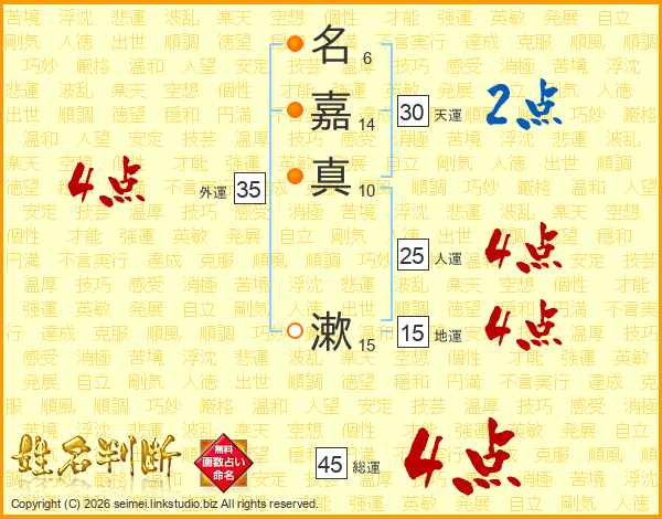 名嘉真漱さんの総運は45画の4点!