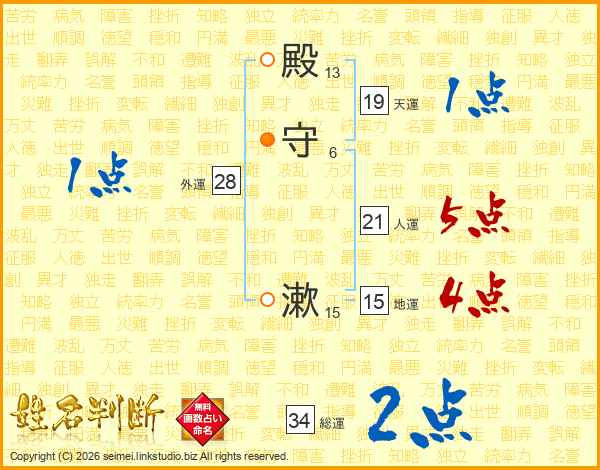 殿守漱さんの総運は34画の2点!