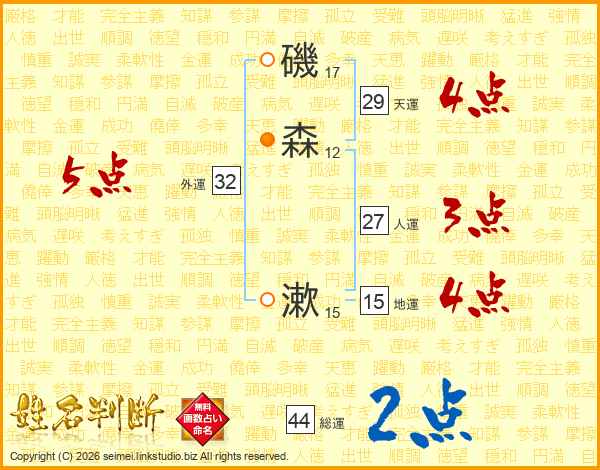 磯森漱さんの総運は44画の2点!