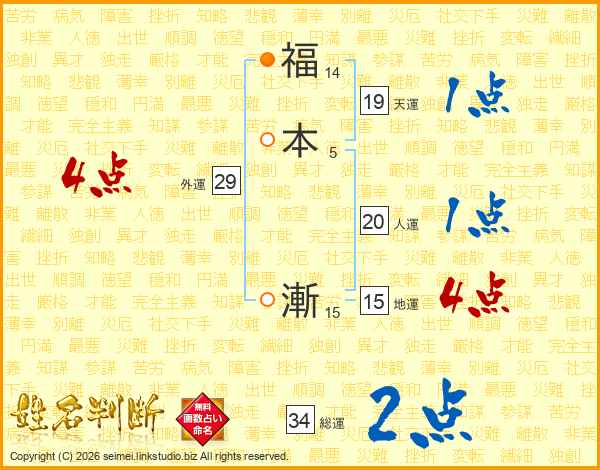 福本漸さんの総運は34画の2点!