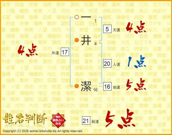 一井潔さんの総運は21画の5点!