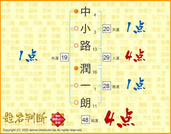 中小路潤一朗さんの人運は29画の4点!