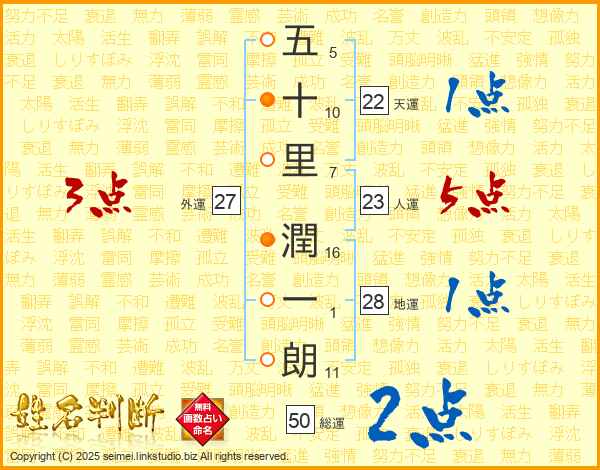 五十里潤一朗さんの人運は23画の5点!