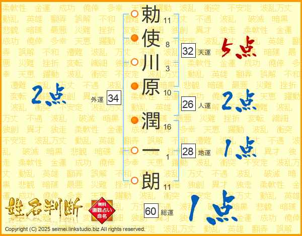 勅使川原潤一朗さんの天運は32画の5点!