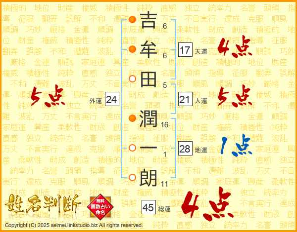 吉牟田潤一朗さんの総運は45画の4点!