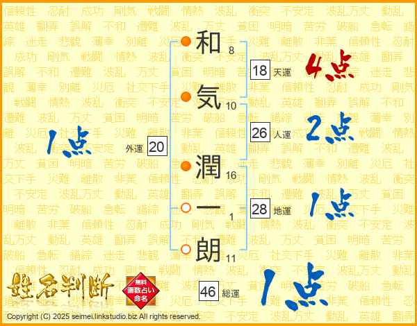 和気潤一朗さんの総運は46画の1点!