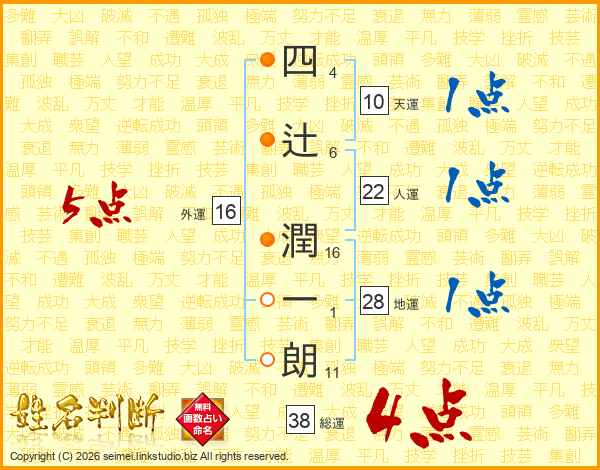 四辻潤一朗さんの総運は38画の4点!