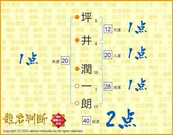 坪(8画)井(4画) 潤(16画)一(1画)朗(11画)