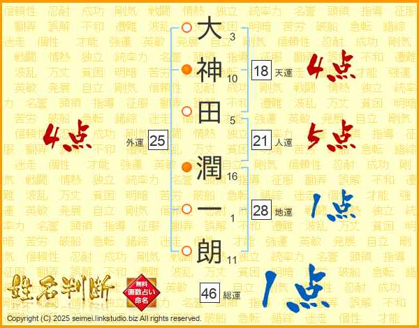大神田潤一朗さんの総運は46画の1点!