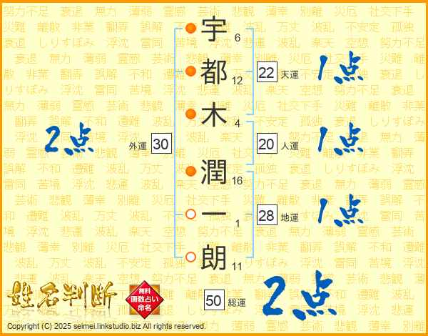 宇都木潤一朗さんの天運は22画の1点!