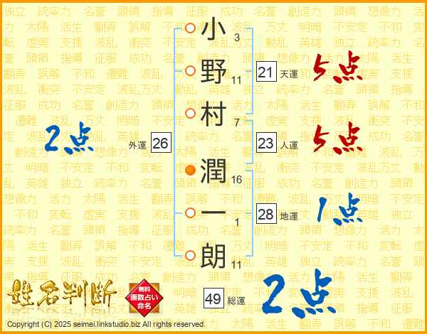 小野村潤一朗さんの天運は21画の5点!
