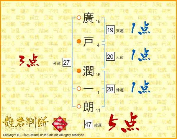 廣戸潤一朗さんの総運は47画の5点!