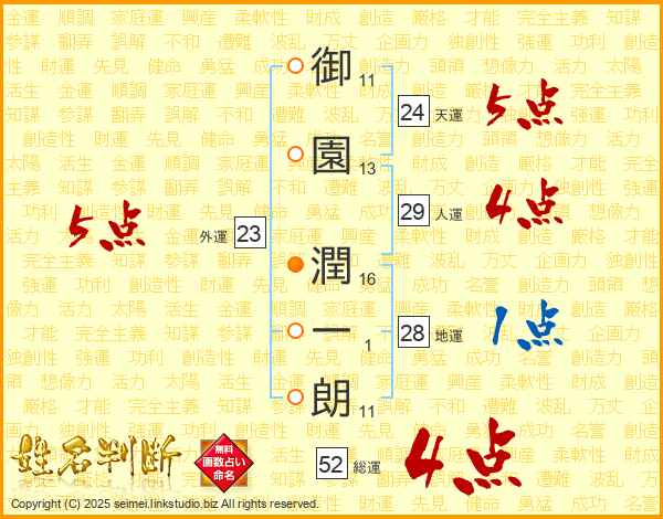 御園潤一朗さんの総運は52画の4点!