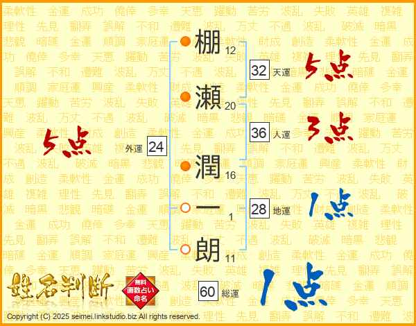 棚瀬潤一朗さんの天運は32画の5点!